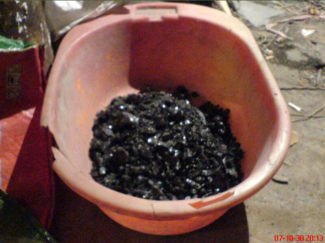 圖解:炭燒完后成渣子,黃金已經(jīng)在這些渣子里了,可以看到哦。