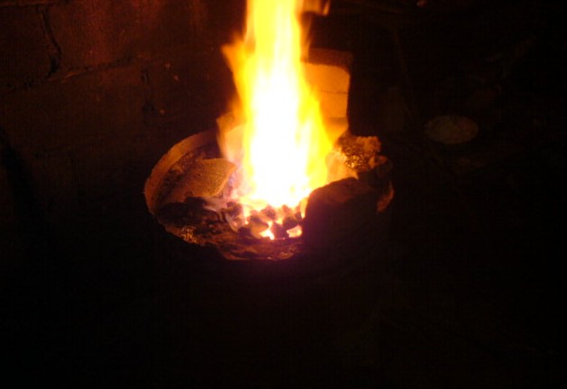 圖解:接下來(lái)是燒炭工序,把從炭桶中取出的炭放到超大鐵鍋里用鼓風(fēng)機(jī)吹風(fēng)讓炭燃燒成灰燼,活性炭是一種非常耐燒的炭一般這么一鍋炭要燒上15個(gè)小時(shí)左右。www.withmoon.cn